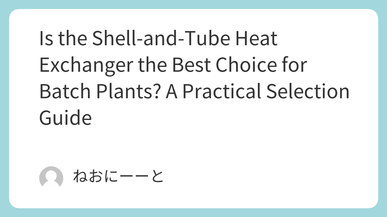 1. Why Shell-and-Tube Exchangers Dominate in Batch Systems