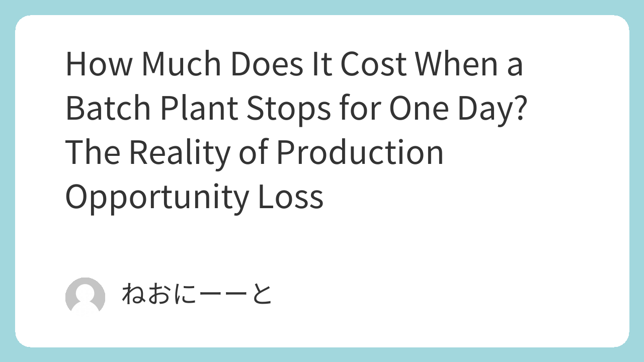 How Much Does It Cost When a Batch Plant Stops for One Day? The Reality of Production Opportunity Loss