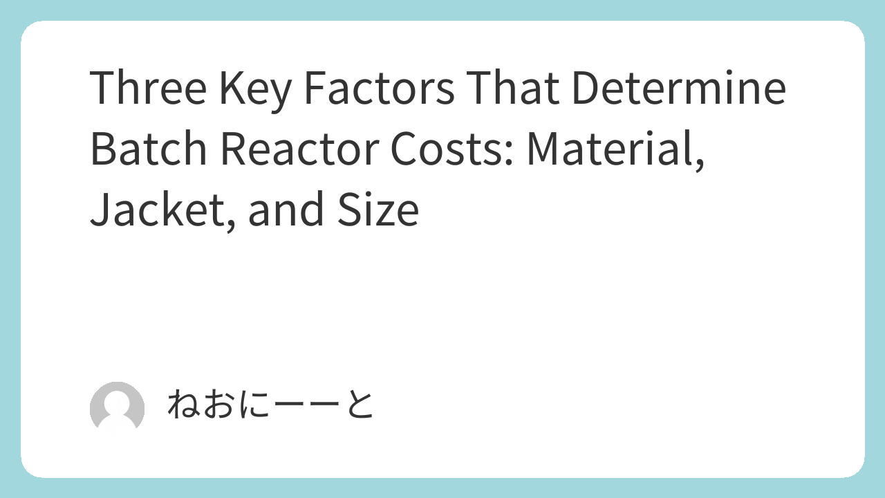 This article explains how the cost of a batch reactor changes depending on material, jacket configuration, and size.