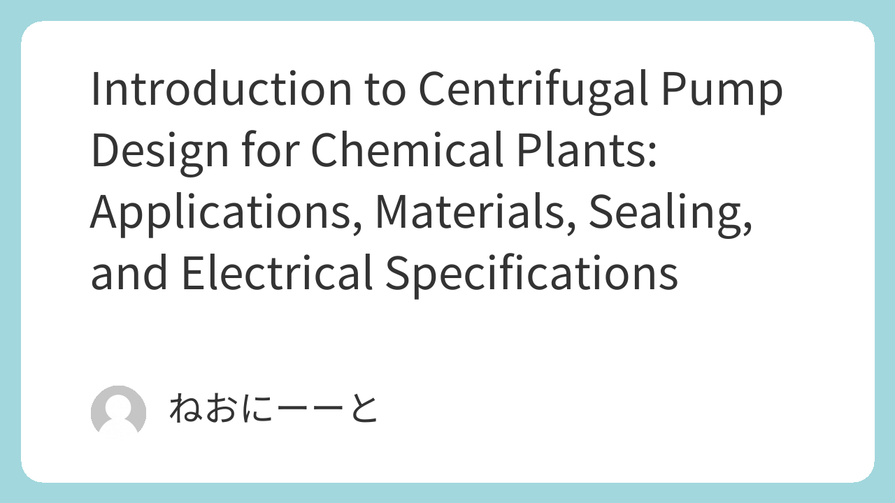 Among the various types of pumps used in chemical plants, centrifugal pumps are the most fundamental. Even for beginner plant engineers, understanding key design factors—such as application, materials, shaft sealing, and electrical specifications—provides confidence in pump selection, operation, and maintenance.