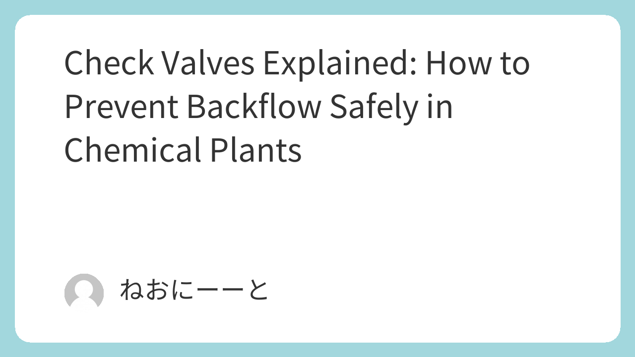 In this article, we explain the basic types of check valves used in chemical plants, their strengths and weaknesses, and practical selection tips—especially for beginners.