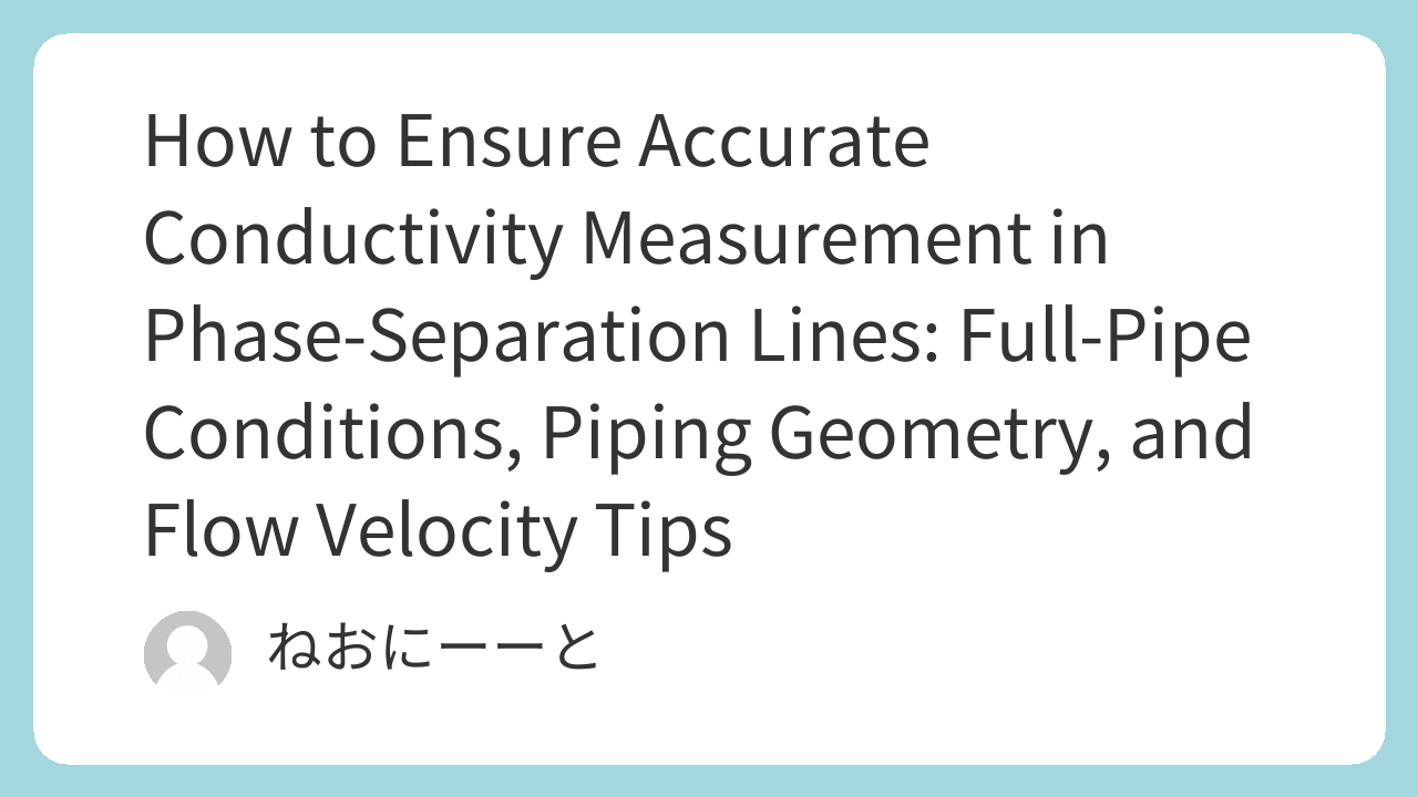 This article explains the essential design points for installing a conductivity meter in a phase-separation line, focusing on full-pipe conditions, piping geometry, and flow-velocity control.