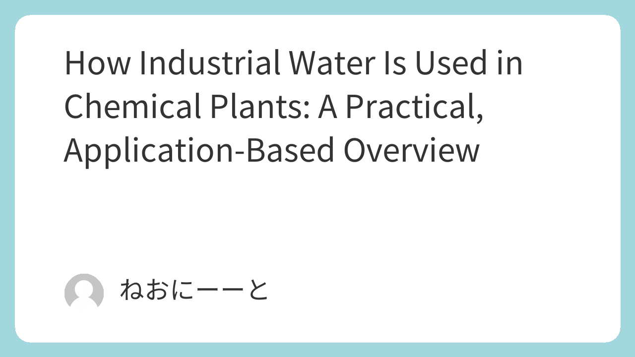 This article organizes the uses of industrial water in chemical plants by application and explains the overall utility system in a way that beginners can easily understand.