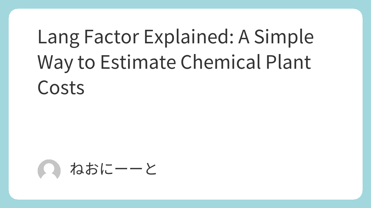 The Lang Factor is a multiplier that converts purchased equipment cost into a rough estimate of the total plant investment. It was introduced by H.J. Lang in the 1940s and has since become a standard tool in preliminary cost estimation.