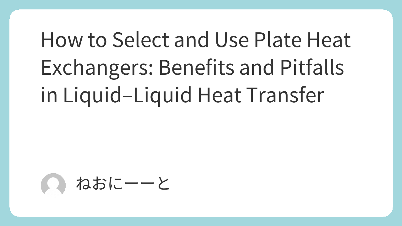 This article explains the fundamentals of plate heat exchangers, how to select the right type, and key precautions in liquid–liquid heat transfer applications. The focus is on practical considerations in chemical plants, making it suitable for beginners and early-career engineers.