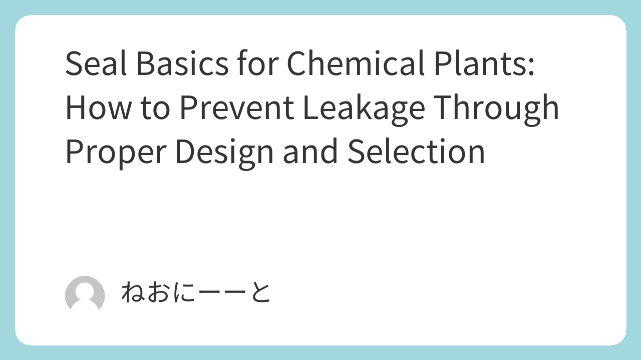 This article explains the basic structure, classification, and selection philosophy of seals, in a way that is easy to understand for beginners in chemical and mechanical engineering.