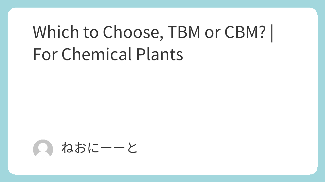 Here, I’ll share my interpretation of TBM and CBM for chemical plants.