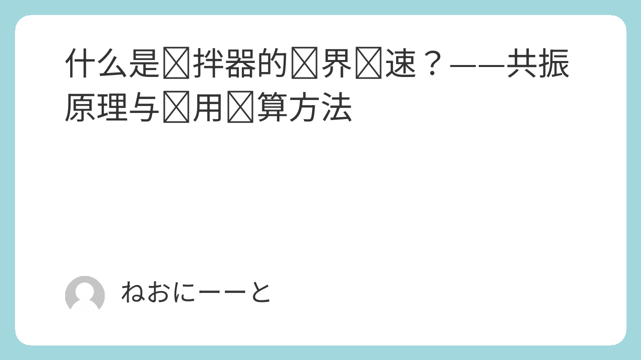 化工装置中使用的搅拌器,如果转速选择不当,可能会达到临界转速(Critical Speed)。