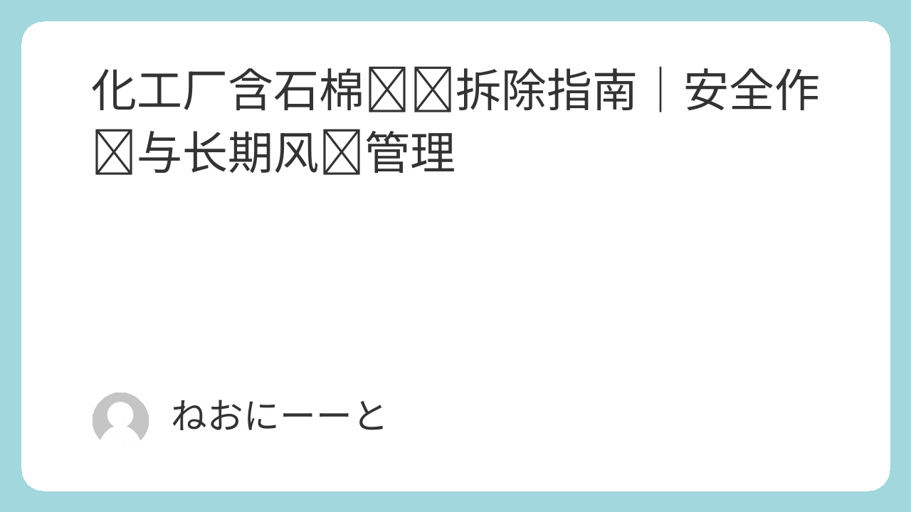 化工厂中的石棉拆除是一项系统性工作,涉及识别、隔离、防护、沟通与计划管理。