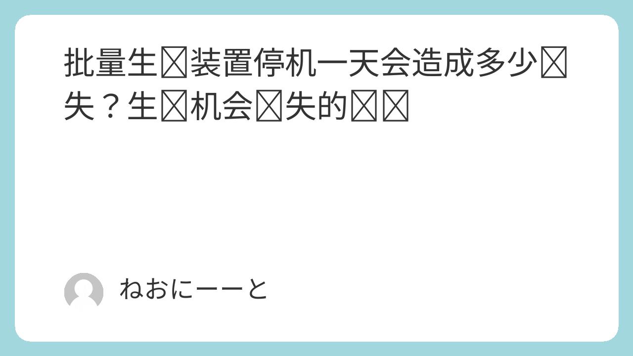 从数字上看,装置停机一天就会造成超过 100 万日元的损失,因此被要求尽快恢复运行是可以理解的。