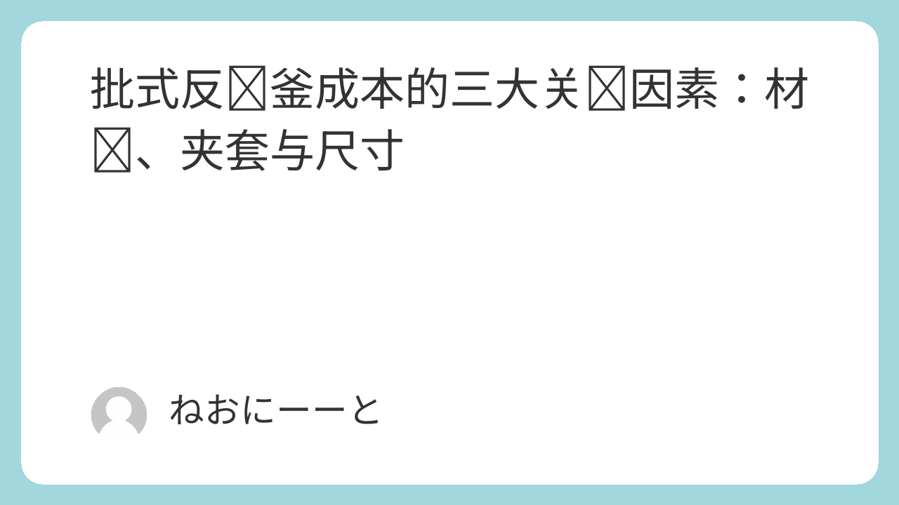 了解反应釜的成本结构,对化工厂的投资预算与设备选型非常重要。