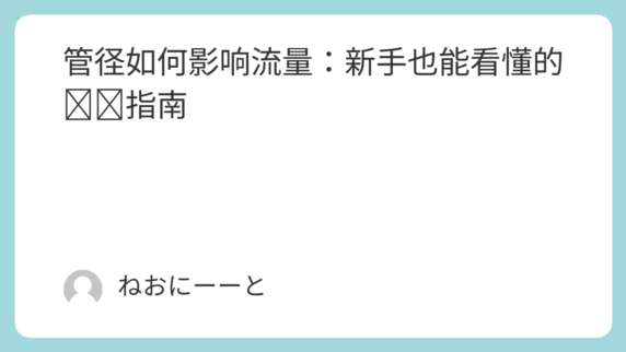 这篇文章以简单易懂的方式解释了“管径与流量”的关系。通过图解与实例,帮助新手工程师了解如何选择合适的管径,以平衡流速、压力损失与安全性。