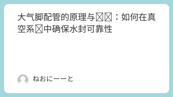 大气脚配管的原理与实务:如何在真空系统中确保水封可靠性