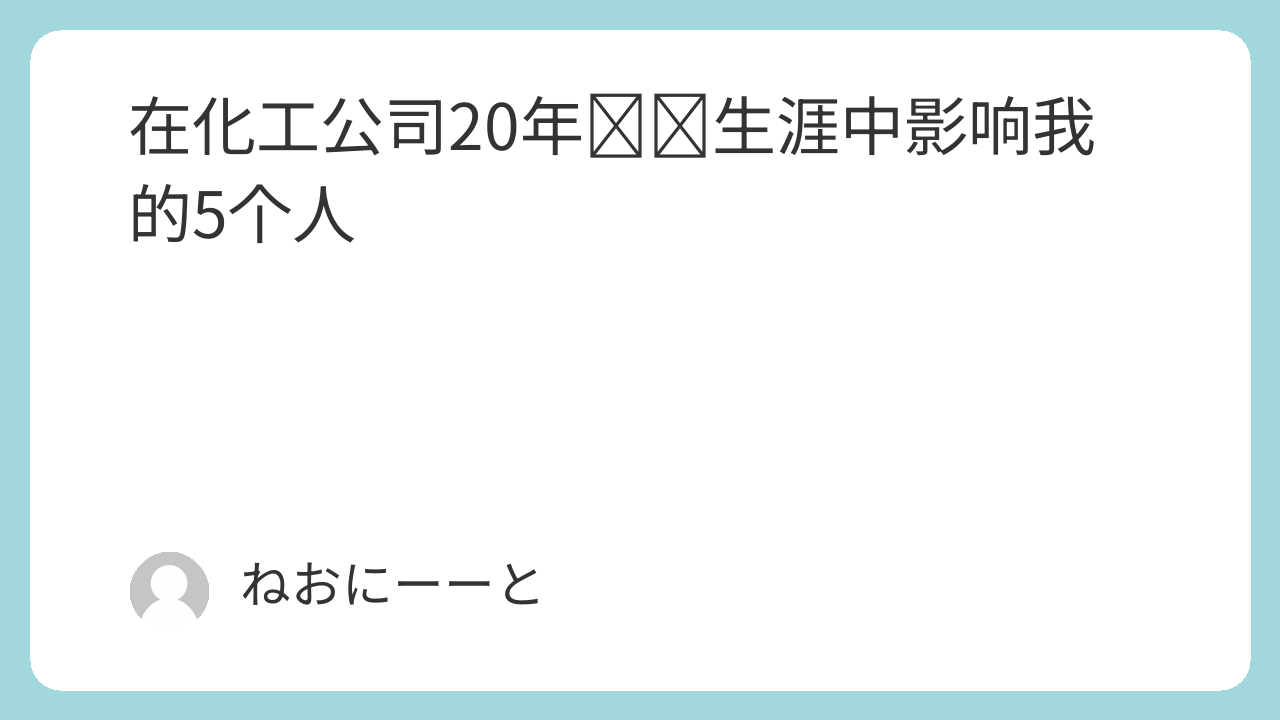 正值假期,有了一些时间回顾自己在化工公司20年的职业生涯。平时很少系统地思考这个问题,但认真回看才发现,这20年里,我确实深受一些人的影响。