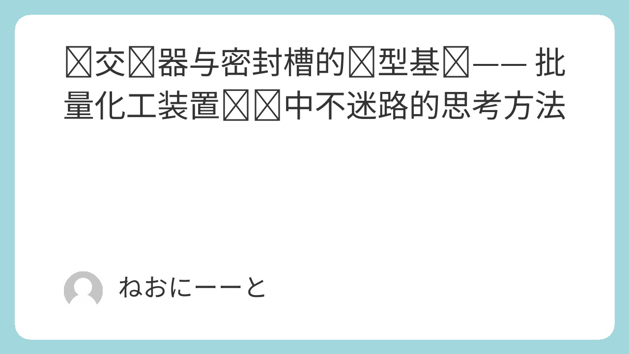 热交换器与密封槽的选型基础—— 批量化工装置设计中不迷路的思考方法