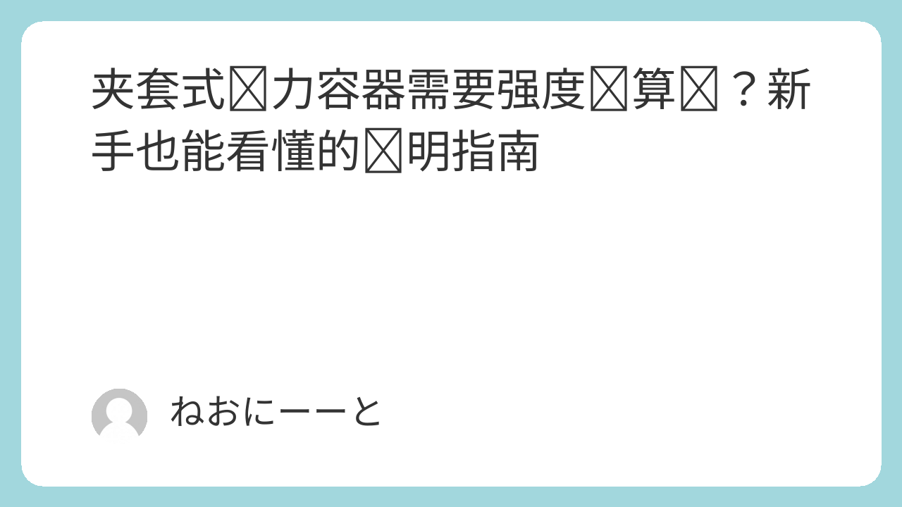 - 正确理解夹套强度,是保障设备安全与可靠运行的重要一步