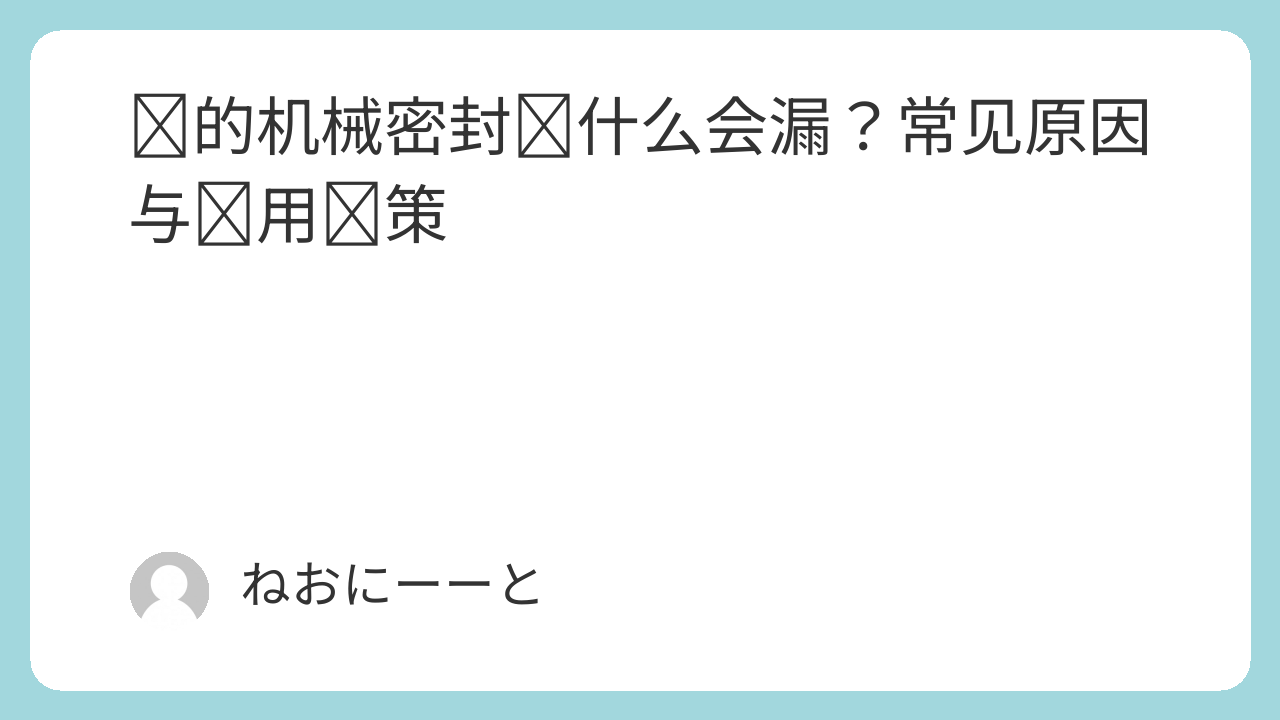 有的工程师认为“机械密封就是容易漏”,也有人一次次更换却始终找不到根本原因。