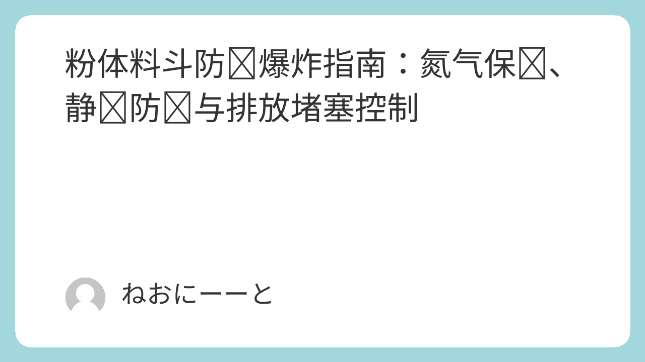 本文将介绍针对料斗的实用防尘爆炸措施,包括:氮气保护、密闭操作、静电防护,以及排出堵塞时的氮气吹扫方法,帮助工程师在设计和操作中提高安全性。