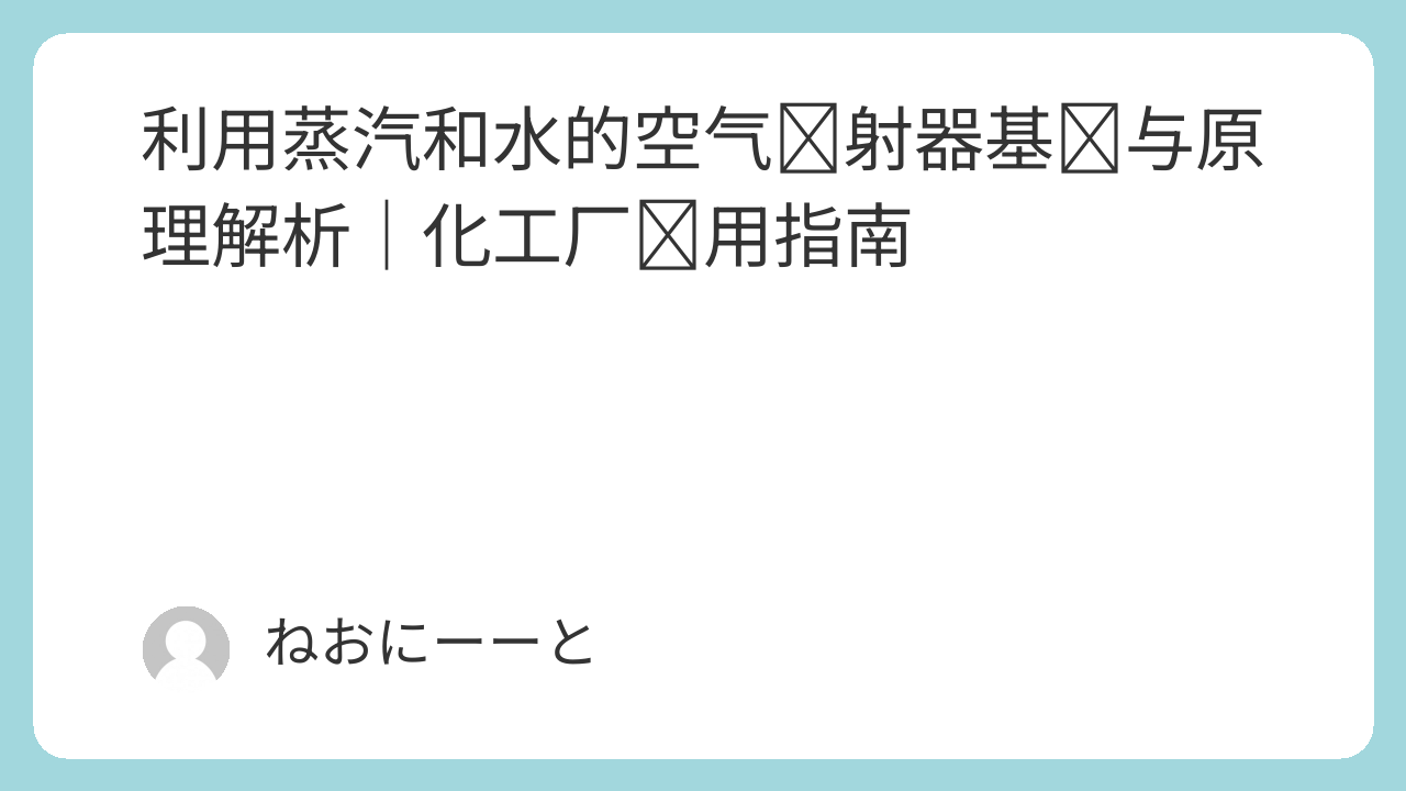 在化工厂和各类工业现场,空气喷射器(Ejector)是一种利用蒸汽或水的能量来吸入或排出空气和气体的重要装置。特别是以蒸汽或水为动力的空气喷射器,因结构简单、性能可靠,在许多现场得到了广泛应用。