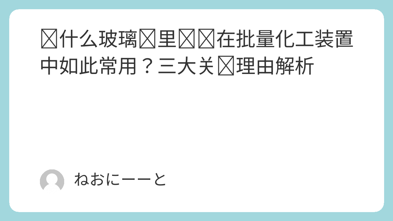 在批量运行的化工装置中,玻璃衬里设备几乎是“标配”。